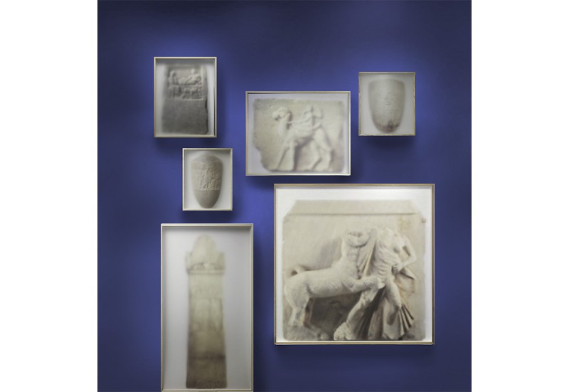 The transport depicted in the painting is linked to the French ambassador Comte de Choiseul-Gouffier, whom Hilaire accompanied during his travels through the region. The scene reflects a broader 18th century practice in which cultural artefacts were transported from Ottoman territories to Western Europe, often under conditions shaped by unequal power relations. Faassen succeeded in tracing the marble objects shown in the painting, now largely held in the collection of the Louvre, and has photographically reassembled them in his distinctive visual language. Veiled behind semi-transparent layers and overlaid with craquelé, the sculptures appear as fragile images marked by time, memory, and displacement. Presented as quiet witnesses rather than historical trophies, the works invite reflection on the legacy of cultural extraction and the narratives that continue to shape museum collections today.